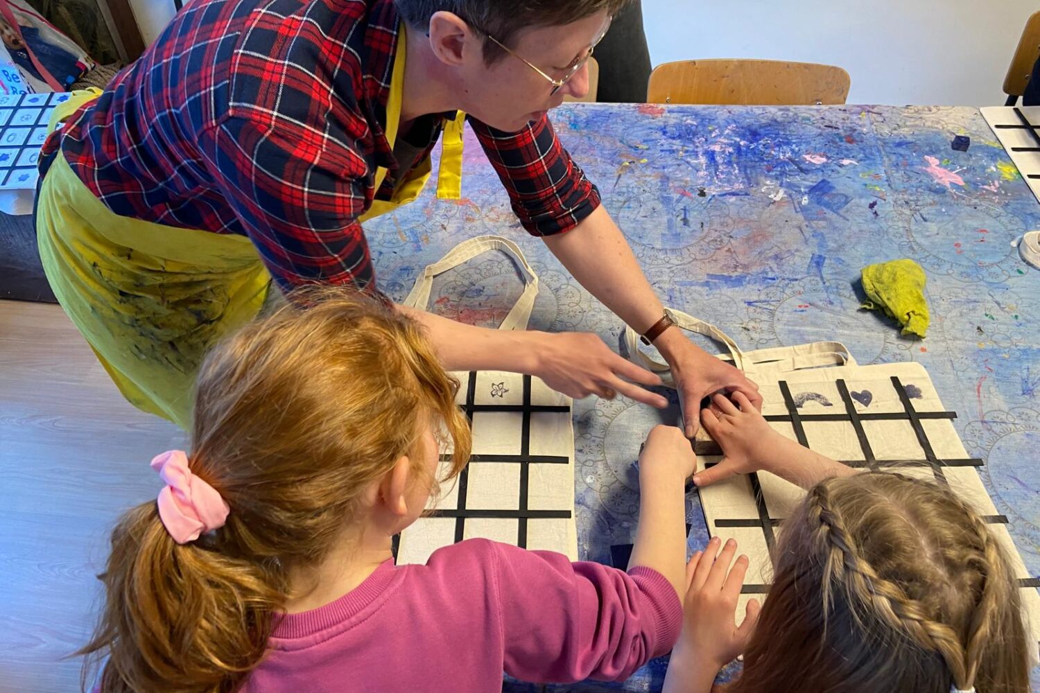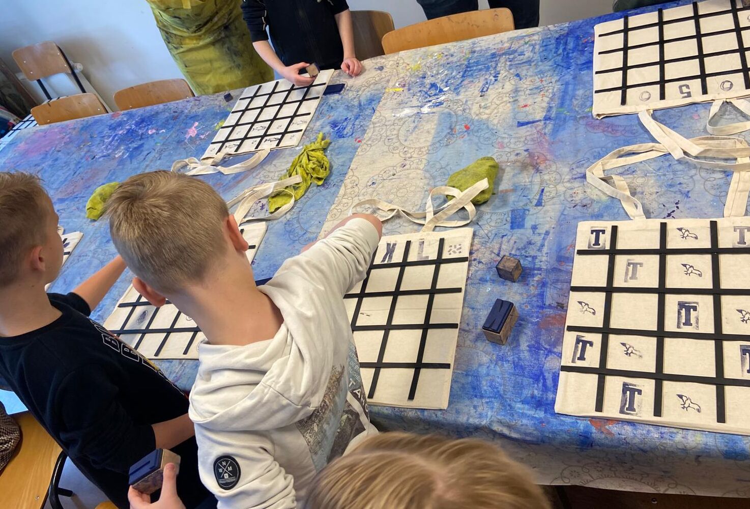 Onder begeleiding van beeldend docent Renske van Twillert gaan de kinderen vervolgens zelf creatief aan de slag. Geïnspireerd door wat ze hebben gezien, ontwerpen ze met stempels een eigen tas. Zo vertalen ze hun indrukken van het museum naar een persoonlijk kunstwerk.