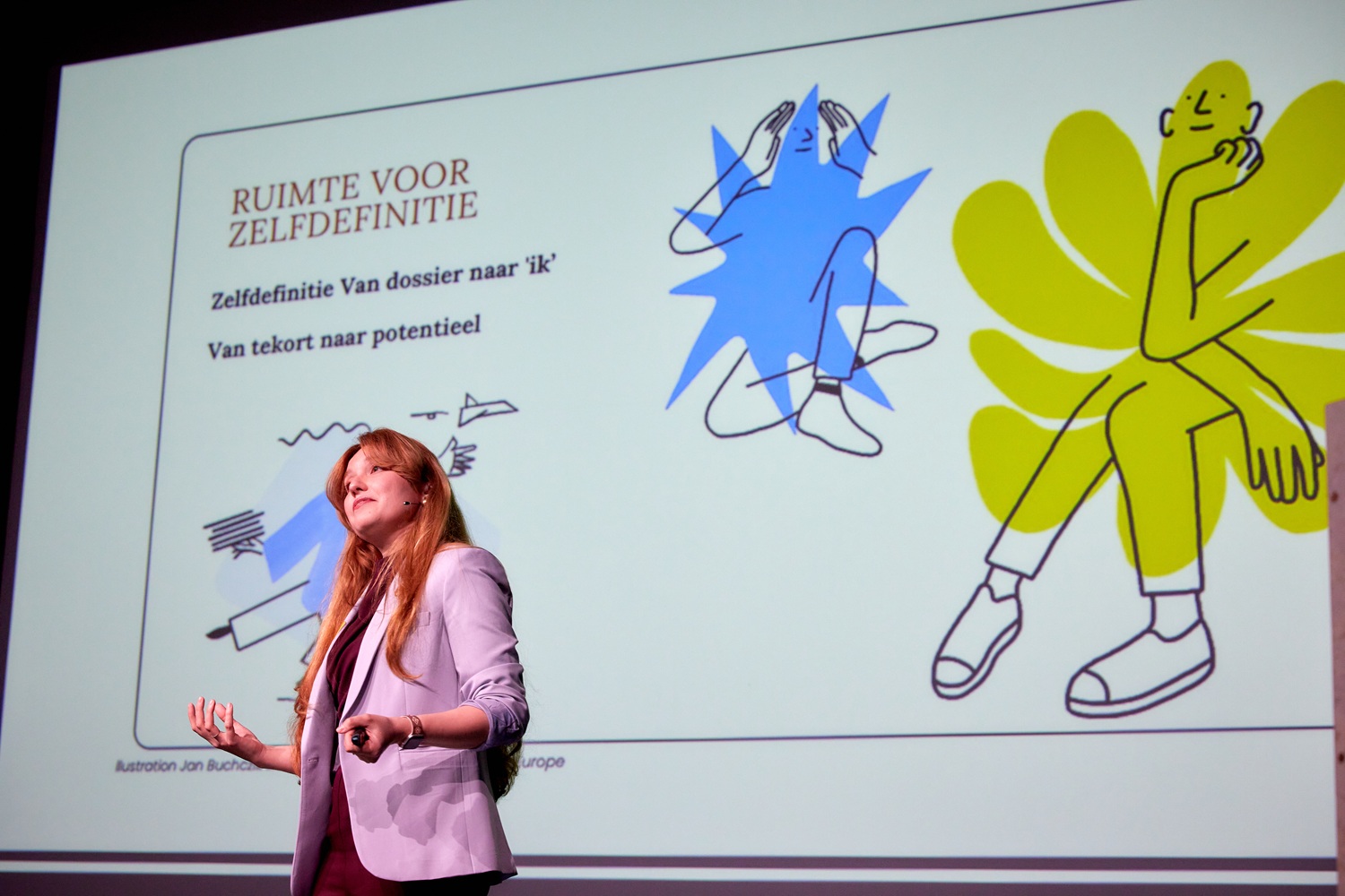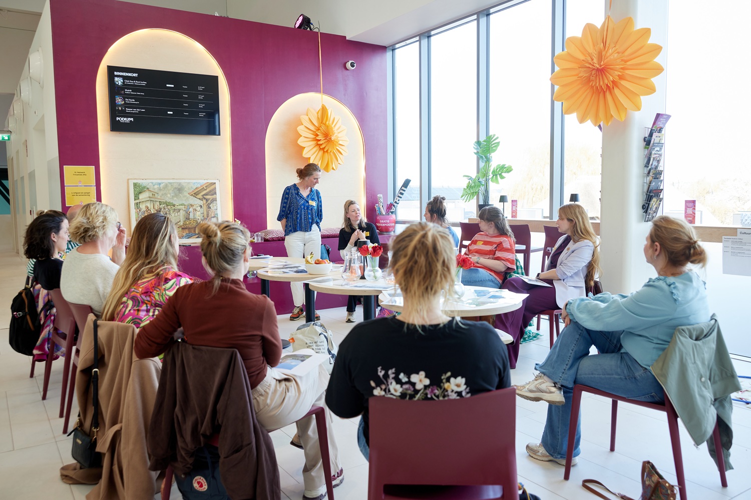 Keynote spreker Diana Bachour sluit hierop aan met een indringend verhaal. Zij vluchtte vanuit Syrië naar Nederland en vertelt hoe kunst haar hielp om een nieuwe plek in de samenleving te vinden. Waar taal soms tekortschiet, biedt kunst ruimte om jezelf uit te drukken en betekenis te geven aan ervaringen. “Van dossier naar potentieel,” noemt ze het proces. Kunst gaf haar de ruimte om zichzelf te zijn, om fouten te maken en om haar eigen verhaal te vertellen. Ze laat zien hoe creativiteit, verbeelding en expressie bijdragen aan een gevoel van thuis zijn en eigenaarschap.