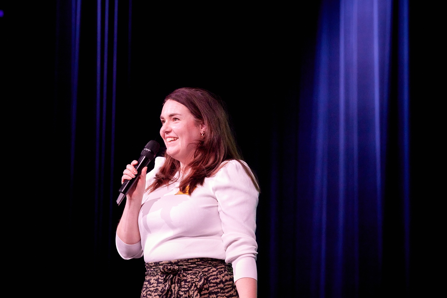 Marleen Lamers, directeur-bestuurder van Kunst Centraal, betreedt het podium voor haar eerste Vuur voor Cultuur. Ze deelt een persoonlijk verhaal over haar jeugd, waarin een verhuizing van de grote stad naar een klein dorp haar uit balans bracht. Ze voelde zich anders en moest haar plek opnieuw vinden. Die plek vond ze uiteindelijk tijdens toneellessen op vrijdagmiddag. “Daar vond ik verbinding, maakte ik vrienden en leerde ik mijn stem te gebruiken,” vertelt ze. De lessen gaven haar zelfvertrouwen en hielpen haar de wereld opnieuw te ontdekken. “Op het moment dat alles verandert, ga je nieuwe mogelijkheden zien. Creativiteit gaat borrelen. En andersom helpt creativiteit je weer om veerkrachtiger te worden.” Volgens haar zijn de kunsten bij uitstek de plek waar kinderen dit kunnen ervaren en ontwikkelen.