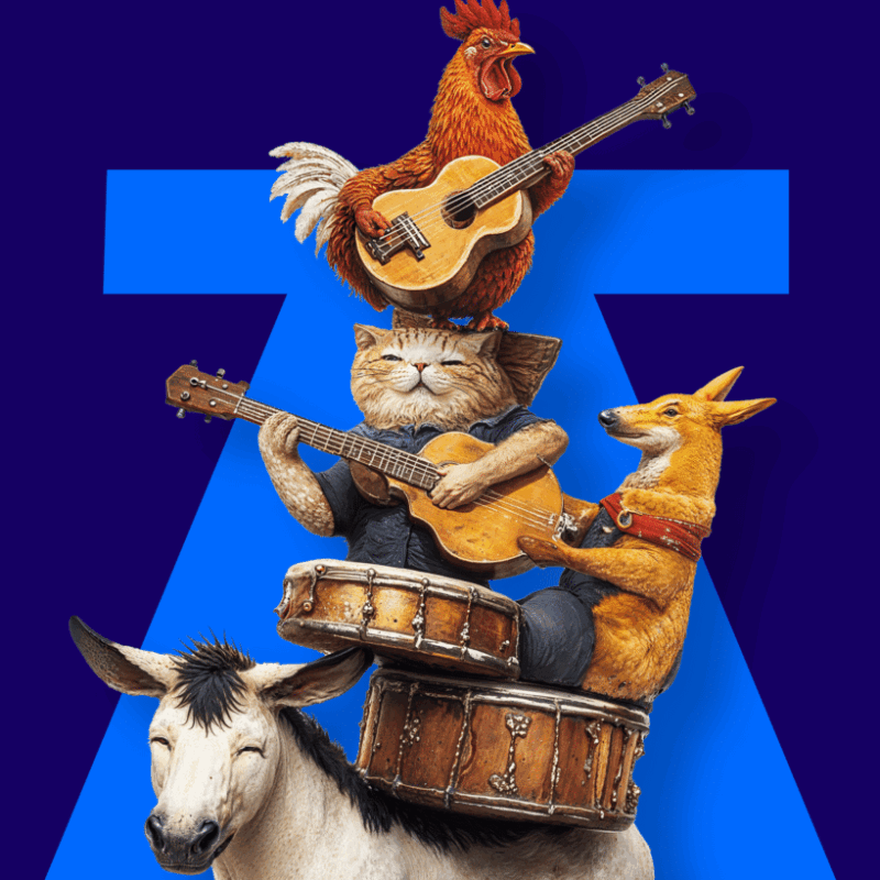 Een afgedankte ezel die accordeon speelt, een schorre henhaan met een viool, een oude hond die saxofoon speelt en een kat die trommelt. Vier dieren vormen gezamenlijk een bont gezelschap. In de ogen van de mensen zijn de dieren te oud of niet meer geschikt om hun werk te doen. Vol energie storten ze zich op een muzikaal avontuur.
