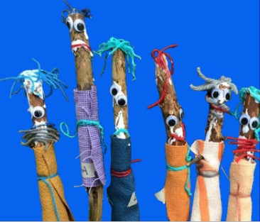 De poppen in Bremer Straatmuzikanten zijn gemaakt van schuimrubber en stof door echte kunstenaars. Wist je dat je van takjes zelf ook een speelpop kan maken?
