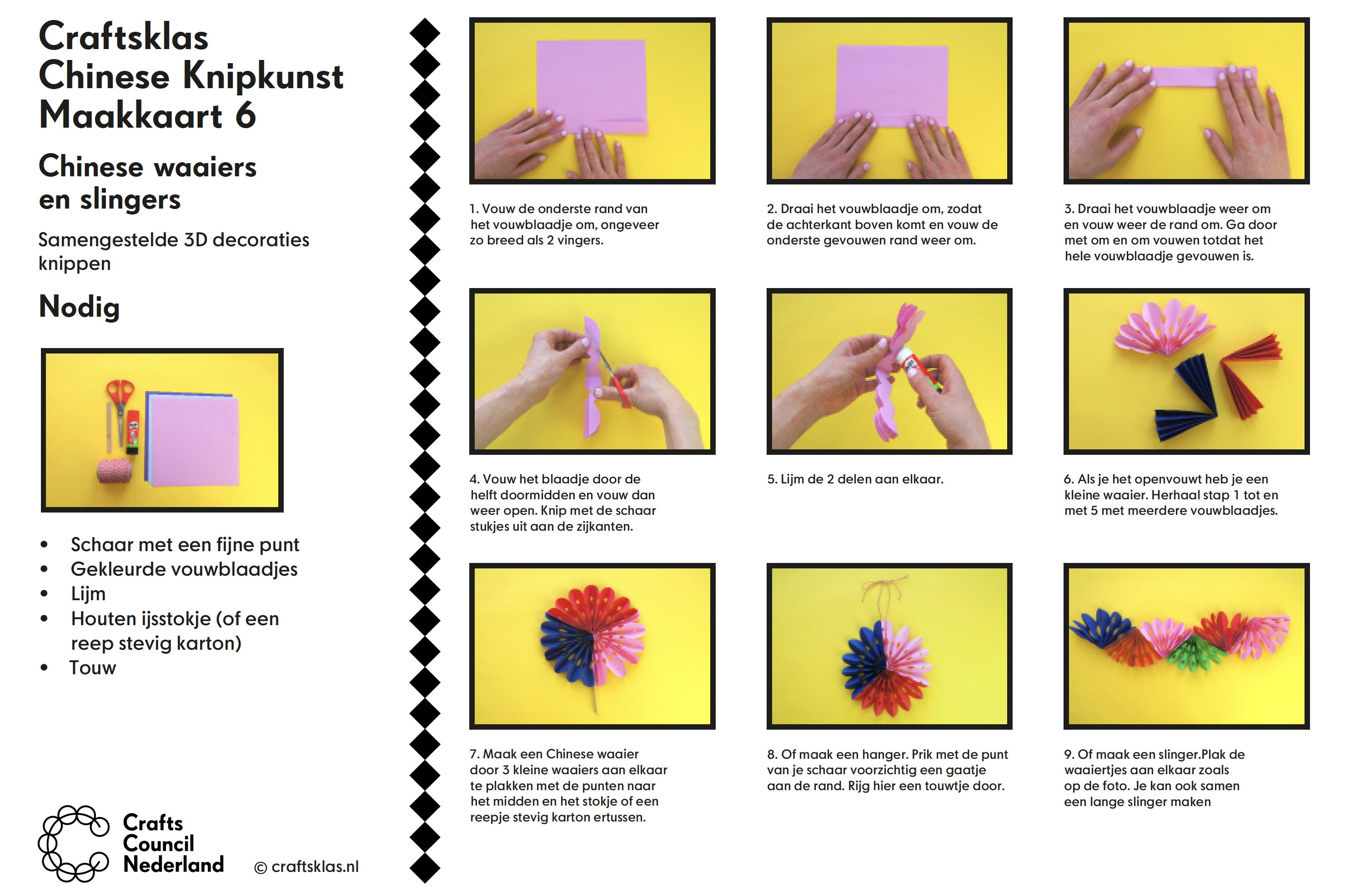 De oefeningen die jullie gaan doen zijn gemaakt door Crafts class. Zij hebben allerlei lessen gemaakt over verschillende creatieve ambachten. Denk aan mandenvlechten, breien, houtsnijden en dus Chinese knipkunst.