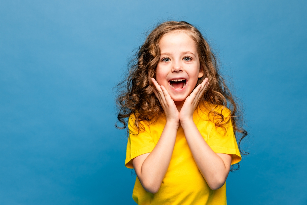 - Degene die helemaal links in de rij staat begint met een emotie, bijvoorbeeld blij, maar doet dit nog klein