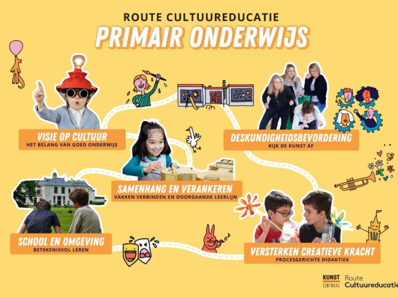 Kunst Centraal helpt je om het cultuurbeleid op school meer inhoud en energie te geven. Samen met een adviseur volg je een traject van 1-3 jaar binnen de Route Cultuureducatie.